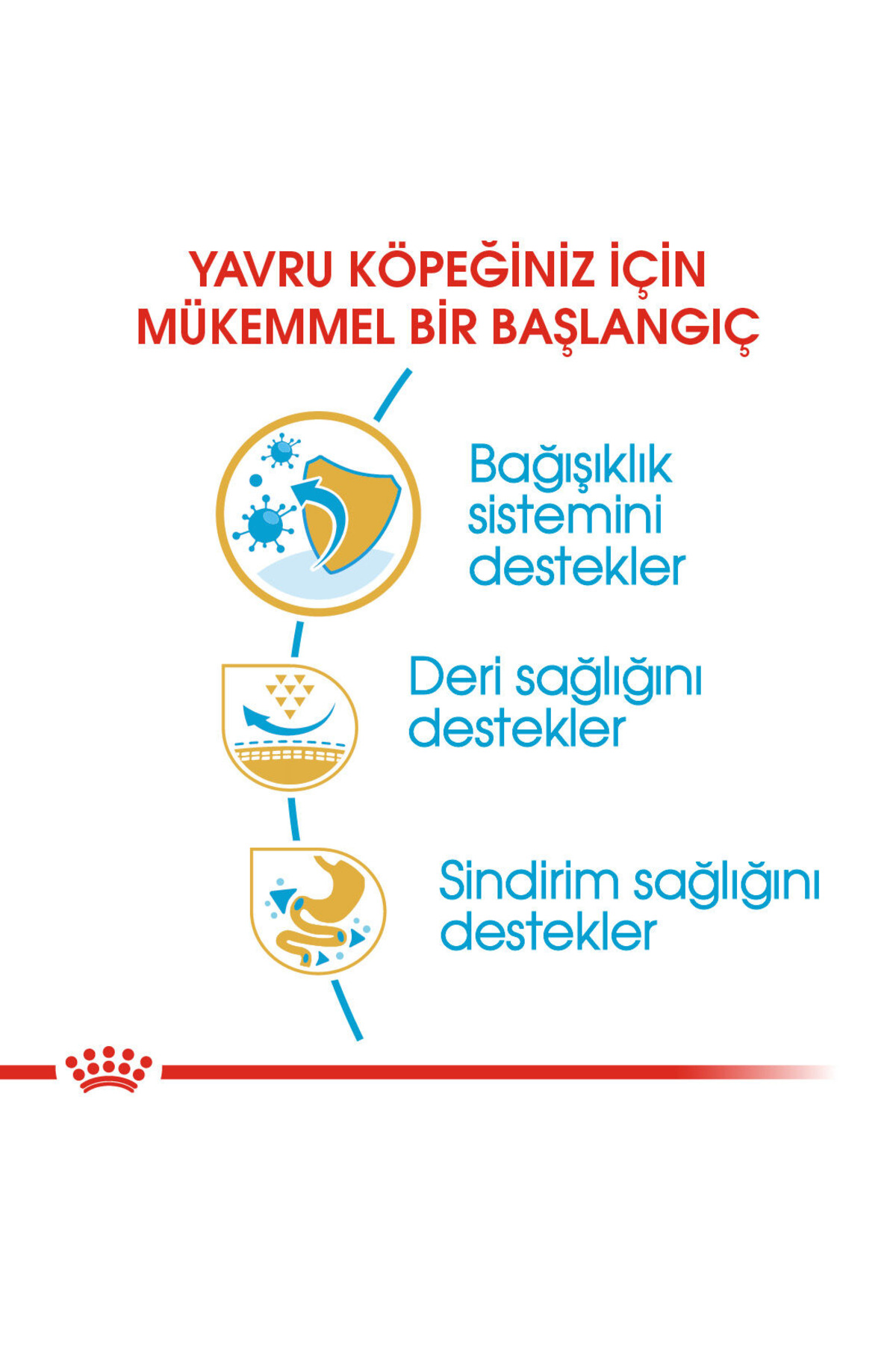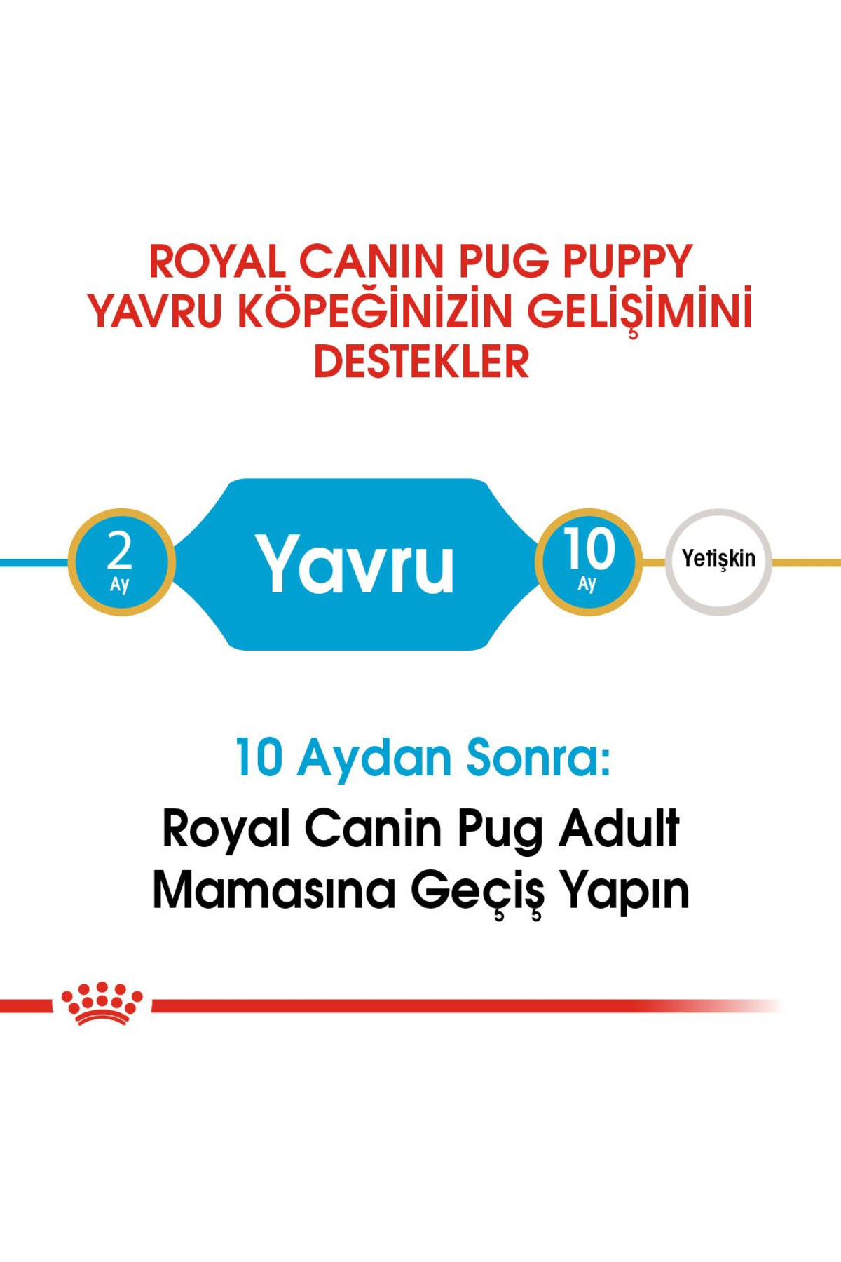 Pug Puppy, bağışıklık sisteminin, sağlıklı derinin ve sindirim sistemin optimal gelişimini desteklerken, özel tasarımlı mama tanesi Pug yavrusunun mamayı daha kolay yakalamasını sağlar ve onu çiğnemeye teşvik eder.; Yorkshire Terrier Junior, 8 haftalık ila 10 aylık safkan Yorkshire Terrier yavruları için özel olarak tasarlanmıştır Pug Puppy, 8 haftalık ila 10 aylık safkan Pug yavruları için özel olarak tasarlanmıştır.; Deri sağlığını destekler.; Özel biçimli mama tanesinin yakalanması ve çiğnenmesi kolaydır.; Sağlıklı sindirimi destekler.; Bağışıklık sistemi sağlığını destekler.; Bağışıklık sistemi desteği Büyüme, köpeğinizin hayatındaki en önemli süreçlerden biridir.; Bu dönem büyük değişimlerin, keşiflerin ve ilklerin dönemidir.; Bu önemli süreç boyunca, yavru köpeğinizin bağışıklık sistemi yavaş yavaş güçlenir.; Pug Puppy, patentli antioksidan kompleksi ve E Vitamini içeriği sayesinde yavru köpeğinizin bağışıklık sistemini destekler.; Sindirim sistemi sağlığı Dışkı kalitesinin iyileştirilmesine yardımcı olan, sindirim sistemi sağlığını ve dengesini destekleyen, yüksek kaliteli ve sindirilebilirlikli protein (*L.; I.; P.; ) ve prebiyotikler içeren besin ögesi kombinasyonu içerir.; *Çok yüksek sindirilebilirlik özelliğinden dolayı seçilmiş protein.; Deri sağlığı EPA&DHA ile zenginleştirilmiş özel formül, derinin bariyer görevinin desteklenmesine ve deri sağlığının korunmasına yardımcı olur.; Özel tasarlanmış kuru mama tanesi: Brakiosefalik çene Pug ırkı yavru köpeğinizin, mama tanesini kolayca almasını ve çiğnemesini teşvik edecek şekilde özel olarak tasarlanmıştır.; KOMPOZİSYON: kurutulmuş kümes hayvanları proteinleri, pirinç, mısır, hayvansal yağlar, pancar küspesi, mısır unu, bitkisel protein izolat*, mısır gluten, hidrolize hayvansal proteinler, balık yağı, mineraller, soya yağı, frukto-oligo-sakkaritler (%0,34), hidrolize maya (mannan-oligo-sakkarit kaynağı), maya ekstratları (beta-glukan kaynağı), hodan yağı, kadife çiçeği özü (lutein kaynağı).; BESLENME TALİMATI: Tabloya bakınız.; Parti kodu, tescil numarası ve son kullanma tarihi için, ambalajin üzerine bakınız.; Serin ve kuru bir yerde saklayınız.; Royal Canin Turkey Evcil Hayvan Ürünleri Ticaret Limited Şirketi tarafından ithal edilmiştir.; İLAVELER (her kg için): Beslenmeye dayalı ilaveler: Vitamin A: 29500 IU, Vitamin D3: 800 IU, Vitamin E: 600 mg, E1 (Demir): 38 mg, E2 (İyot): 3,8 mg, E4 (Bakır): 12 mg, E5 (Manganez): 50 mg, E6 (Çinko): 135 mg, E8 (Selenyum): 0,07 mg - Teknolojik ilaveler: Sedimanter kökenli klinoptilolit: 10 g - Organoleptik ilaveler: Yucca ekstratları: 125 mg - Koruyucular - Antioksidanlar *L.; I.; P.; : Çok yüksek sindirilebilirlik özelliğinden dolayı seçilmiş protein.