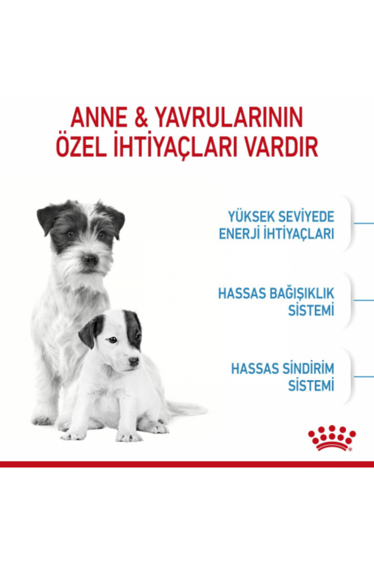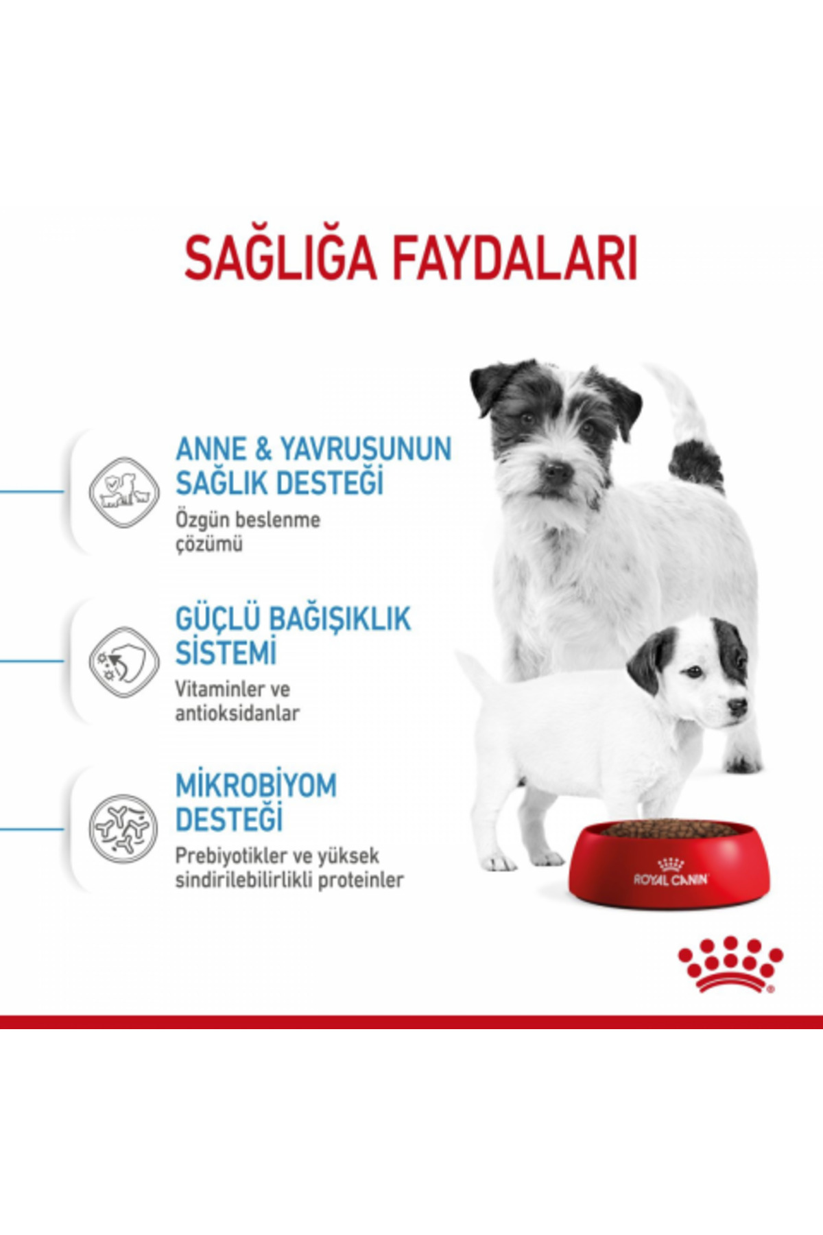ROYAL CANIN® Mini Starter Mother & Babydog, yeni doğum yapan anne köpeklerin ve yavrularının beslenme ihtiyaçlarını desteklemek için özel olarak formüle edilmiştir. Bu formül, 10 kg’a kadar olan küçük yetişkin köpekler ve 2 aylığa kadar olan sütten kesilen yavrular için uygundur. Bu özel formül, küçük köpeğinizin yüksek enerji ihtiyaçlarını karşılarken aynı zamanda yavrularının sağlıklı gelişimini desteklemek için özel olarak uyarlanmıştır. Ayrıca sağlıklı bağışıklık sistemi gelişimini desteklemek için Vitamin C ve E de dahil olmak üzere etkisi kanıtlanmış besin öğeleri içerir. Bu formül, içerdiği faydalı prebiyotikler ve çok yüksek sindirilebilirliği olan proteinler sayesinde, sindirim sağlığı açısından bağırsak mikrobiyotasının (bağırsak florası) sağlıklı dengesini desteklemeye yardımcı olur.;ROYAL CANIN® Mini Starter Mother & Babydog genç yavru köpeklerde sağlıklı beyin gelişimini desteklemeye yardımcı olan Omega-3 yağ asitleriyle zenginleştirilmiştir. ROYAL CANIN® Mini Starter Mother & Babydog’un taneleri suyla kolaylıkla ıslatılabilir ve böylelikle sütten kesilen yavru köpeklerin iştahını artıracak ideal bir lapa kıvamı elde edilebilir. 8 hafta gibi kısa bir süre içerisinde, yavru köpekleriniz bir sonraki büyüme evresinde beslenme gereksinimlerini karşılamak için özel olarak geliştirilen bir diyete ihtiyaç duyacaklar. Bu aşamada, kuru mama ya da soslu yaş mama olarak sunulan ROYAL CANIN® Mini Puppy’ye geçebilirsiniz.;Onaylanmış Formül %95 yetiştirici memnuniyeti. (2020 ve 2021 yıllarında gerçekleştirilen bir yetiştirici onay anketine dayanmaktadır. ) Özellikler Doğal antidoksidanlar içerir. Yapay renklendiriciler içermez. Yapay tatlandırıcılar içermez.;Mother & Babydog’un Sağlık Desteği STARTER anne köpeklerin son gebelik dönemindeki ve laktasyon dönemlerindeki özel ihtiyaçlarını ve 2 aya kadar olan yavru köpeklerin özel ihtiyaçlarını karşılayacak şekilde formüle edilmiştir. Güçlü Bağışıklık Sistemi Etkinliği bilimsel olarak kanıtlanmış, E ve C vitaminleri de içeren özel kompleks sayesinde yavru köpeklerin bağışıklık sistemlerini destekler. Mikrobiyom desteği Sindirim sağlığı için bağırsak mikrobiyotasının sağlıklı dengesini sağlamaya yardımcı olan prebiyotikler (MOS) ve yüksek sindirilebilirlikli proteinlerin kombinasyonunu içerir. Beyin Gelişimi Omega 3 yağ asitleri (DHA) ile zenginleştirilmiş bu formül, yavru köpeklerin beyin gelişimini ve sağlıklı görme fonksiyonlarını da destekler.;KOMPOZİSYON: Kurutulmuş kümes hayvanları proteinleri, pirinç, hayvansal yağlar, buğday gluten*, mısır, pancar küspesi, hidrolize hayvansal proteinler, mineraller, soya yağı, balık yağı, frukto-oligo-sakkaritler, hidrolize maya (manno-oligo-sakkarit ve beta-glukan kaynağı) (%0,30), alg yağı Schizochytrium sp. (DHA kaynağı), bütirik asit tuzu, kadife çiçeği unu (lutein kaynağı).;BESLENME TALİMATI: Tabloya bakınız. Parti kodu, tescil numarası ve son kullanma tarihi için, ambalajin üzerine bakınız. Serin ve kuru bir yerde saklayınız. Royal Canin Turkey Evcil Hayvan Ürünleri Ticaret Limited Şirketi tarafından ithal edilmiştir.;İLAVELER (her kg için): Beslenmeye dayalı ilaveler: Vitamin A: 18500 IU, Vitamin D3: 1200 IU, Demir (3b103): 40 mg, İyot (3b201, 3b202): 4 mg, Bakır (3b405, 3b406): 12 mg, Manganez (3b502, 3b504): 52 mg, Çinko (3b603, 3b605, 3b606): 131 mg, Selenyum (3b801, 3b811, 3b812): 0,07 mg - Teknolojik ilaveler: Sedimanter kökenli klinoptilolit: 10 g - Koruyucular - Antioksidanlar.;*L.I.P.: çok yüksek sindirebilirlik özelliğinden dolayı seçilmiş protein